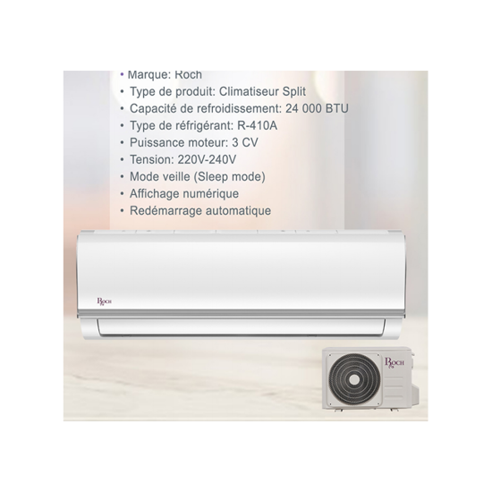 Climatiseur split ROCH 24000BTU R410 – RAC-S24R2-A – 3 CV