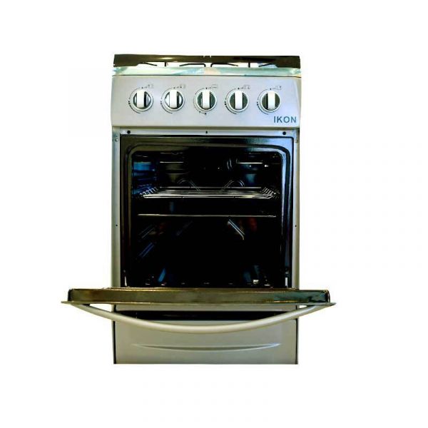 La cuisinière à gaz IKON IK5 vous permet de cuisiner des plats et des friandises de tous les jours sur la table de fête sur quatre brûleurs de puissance différente et au four. Le four est complété par un grill, sur lequel vous faites griller de la viande ou du poisson jusqu’à ce qu’une belle croûte dorée apparaisse. Les paramètres sont ajustés de manière pratique les interrupteurs rotatifs avec allumage électrique intégré facilitent l’allumage de la flamme.