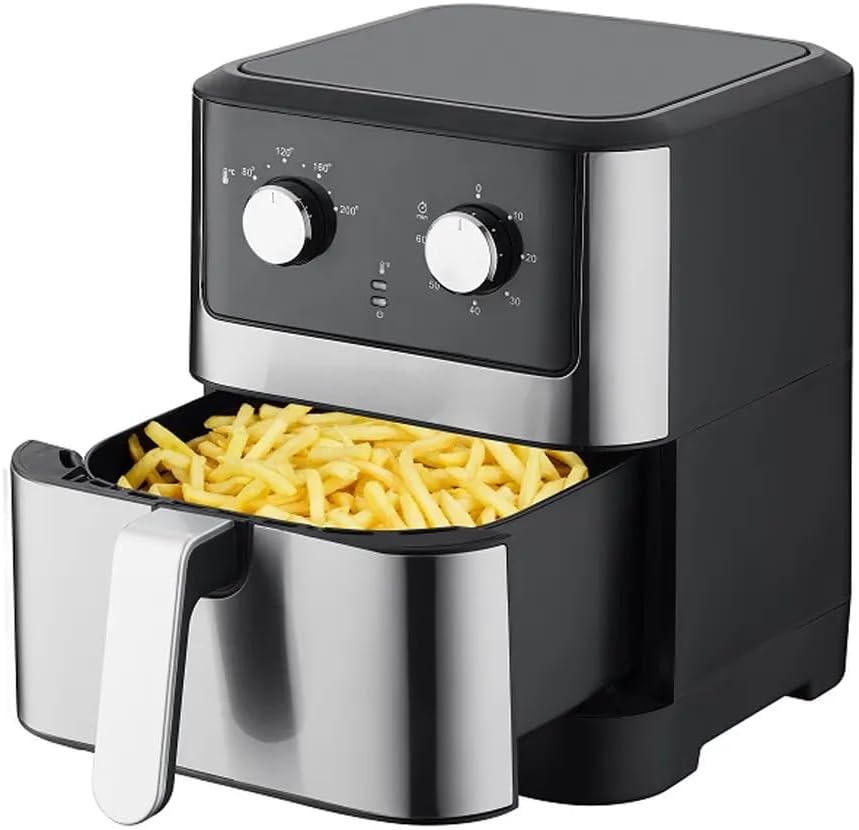 Avec la friteuse à air chaud, vous pouvez frire des frites ou des snacks avec de l’air chaud, sans huile ou un minimum d’huile. Cette méthode de préparation prend un peu plus de temps qu’avec une friteuse traditionnelle mais elle est beaucoup plus saine!