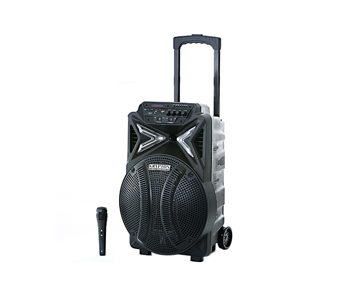 Haut-parleur de chariot rechargeable portable Krypton – Ce haut-parleur est idéal pour les fêtes et les grands rassemblements ou les grands espaces. L’impédance : 40 ohms de sortie avec des basses supplémentaires vous époustouflera. Le micro sans fil peut être utilisé pour chanter avec de la musique ou faire des annonces. De plus, ce haut-parleur possède également les fonctionnalités supplémentaires d’un port USB à travers lequel vous pouvez écouter votre musique en connectant une clé USB, une fente Aux in pour connecter divers autres appareils multimédias, un lecteur de carte SD avec lecture audio et radio FM. Le haut-parleur a une batterie rechargeable intégrée. Il peut être utilisé pour les activités de plein air, les campagnes publicitaires et les activités récréatives. Il est conçu avec innovation et est décoré avec des lumières de scène Ball sur le dessus et un woofer à LED pour créer l’ambiance d’une célébration. Une combinaison parfaite pour une fête.
