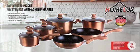 Dans une cuisine, différents plats sont souvent préparés pour lesquels différents types de casseroles sont souhaitables. Homelux a une solution pour cela: un ensemble de 10 casseroles avec différentes casseroles à des fins différentes. Les ensembles de 10 casseroles Homelux se composent de trois casseroles, deux poêles et une casserole. Les trois casseroles de cuisson ont des diamètres différents de 20, 24 et 28 cm et sont équipées d’un couvercle en verre. Les deux poêles à frire sont fournies dans les tailles 24 et 28 centimètres qui peuvent être utilisées à des fins différentes. La casserole a un diamètre de 16 cm et est également livrée avec un couvercle en verre. En bref, l’ensemble de 10 casseroles Homelux comprend différentes casseroles qui peuvent être utilisées pour différents plats. Sans parler d’un véritable accroche-regard dans votre cuisine.