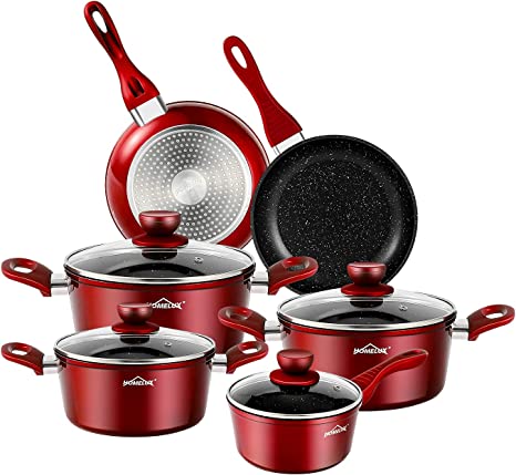 - Batterie de cuisine à induction & poignée Cool Touch – Cette batterie de cuisine est sûre pour une utilisation dans le gaz, électrique, antiadhésif et les compteurs à induction. Poignées Cool Touch ergonomiques et résistantes à la chaleur pour une cuisson confortable et sûre.