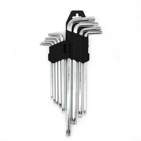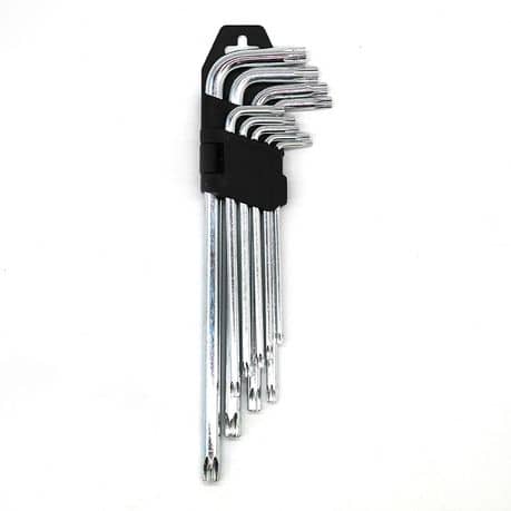 L’ensemble comprend 9 jeux de clés à vis Torx extra-longues en forme de L avec un support. Fabriqué à partir de chrome et de vanadium