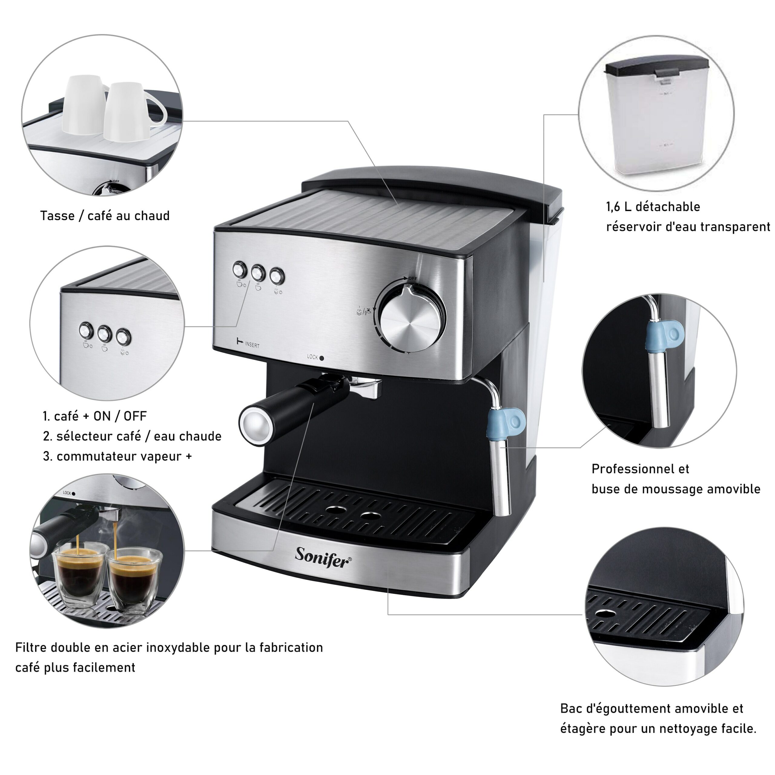 Commencez votre journée du bon pied avec la machine à Capsule de SONIFER Elle met littéralement un délicieux un café entre vos mains, et offre un temps de préchauffage rapide pour que vous ne sortiez pas de chez vous les mains vides lorsque vous êtes pressé.