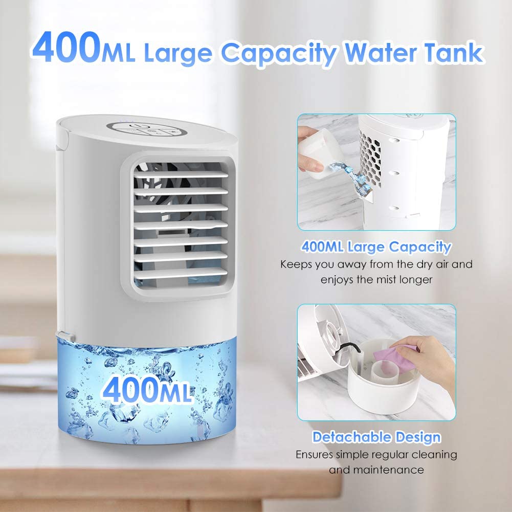 Avec notre mini refroidisseur d’air. Procurez-vous ce refroidisseur d’espace personnel pour créer votre zone de confort . Ne dépensez que quelques centimes par jour . Ajoutez simplement de l’eau et de la glace dans le réservoir d’eau, puis détendez-vous et profitez de l’haleine rafraîchissante et humide .