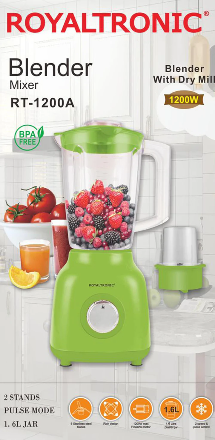 Blender Mixeur Royaltronic avec deux bols en plastique de 1200 Watts pour un mélange parfait.